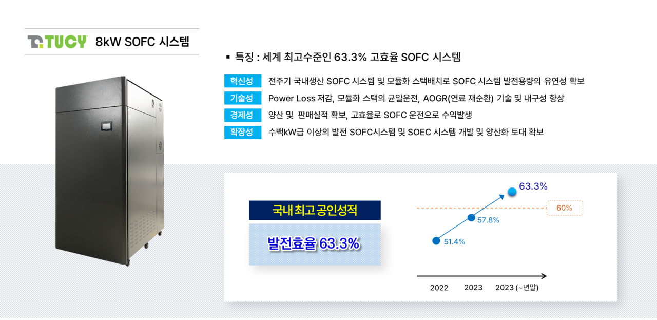 또한 현재 개발 중인 발전용 시장의 SOFC 발전 시스템과 SOEC 수전해 시스템 기술 경쟁력의 토대를 확보했다는 자신감을 내비쳤다.