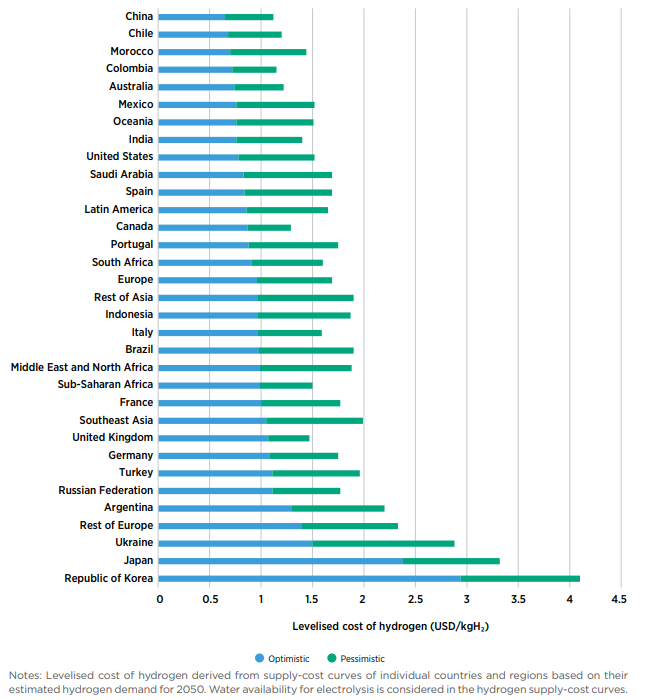[자료 : IRENA - Global hydrogen trade to meet the 1.5C Climate Goal Part 3: Green hydrogen cost and potential]
