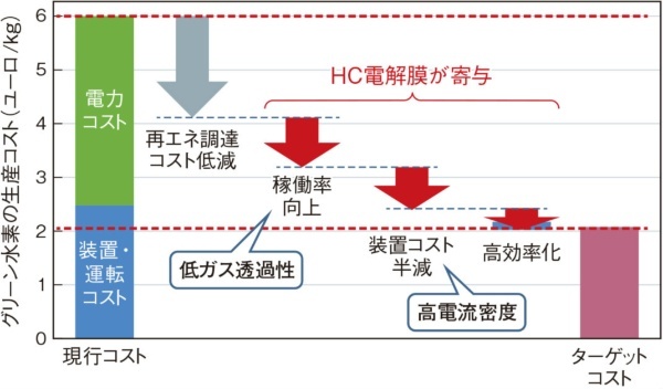 当面の出荷先は既に確保したようだ。現時点で、日立造船やドイツSiemens Energy(シーメンスエナジー)などが山梨県で進める水電解装置の実証実験にこのHC電解質膜を使う方針である。さらに、東レの欧州子会社で水電解装置事業を手掛けるドイツGreenerity(グリナリティー)は、2023年10月時点で1GW超の装置が稼働し、2025年には3GW、2030年には10GW以上まで設備を増強する計画であるという。