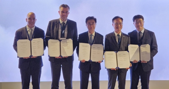청정수소 글로벌 협력 업무협약 체결 후 기념촬영 하고 있다. 오른쪽 두 번째는 한국중부발전 김광일 기술안전본부장. 한국중부발전㈜ 제공