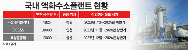 SK E&S, 효성중공업, 두산에너빌리티 등 액화수소 생산 계획을 세운 기업들은 당초 지난해 모두 상업생산에 나설 계획이었지만, 현재 본격적으로 액화수소 생산에 나선 기업은 없다. SK E&S는 지난해 11월, 효성중공업은 같은 해 12월 액화수소 생산에 나설 계획이었지만, 줄곧 가동 시기를 연기해왔다.