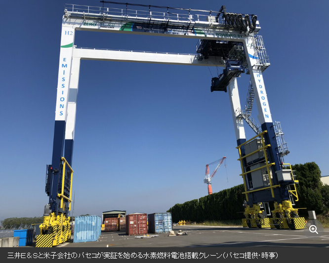 【ニューヨーク時事】港湾設備などを手掛ける三井E&Sと米子会社のパセコは、米カリフォルニア州のロサンゼルス港で水素燃料電池を搭載したクレーンの実証を近く始める。 ディーゼ