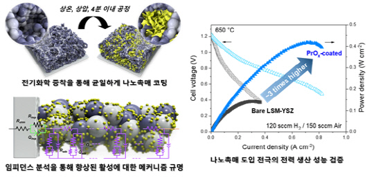 아울러 연구진은 코팅된 나노 촉매가 산소 교환, 이온 전도를 촉진하는 원리를 규명해 촉매 코팅 방식으로 복합전극의 낮은 반응 속도를 해결할 수 있다는 학술적 근거도 제시했다.