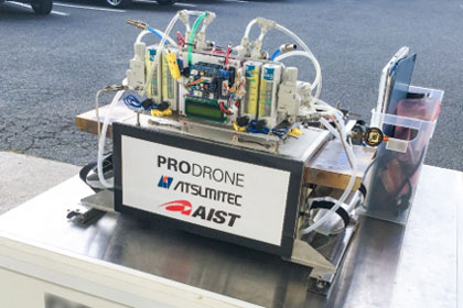 株式会社プロドローン(愛知県名古屋市)、株式会社アツミテック(静岡県浜松市)、産業技術総合研究所(NEDO 以下、産総研)は、液化石油ガス(LPG)のカセットガスボンベを利用した固体酸化物形燃料電池(SOFC= Solid Oxide Fuel Cell)搭載のドローンを開発し、世界初の飛行実証を行ったことを公表した。