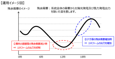 系統の需給状況に応じた出力制御の技術検証の運用イメージ 出典:大阪ガス