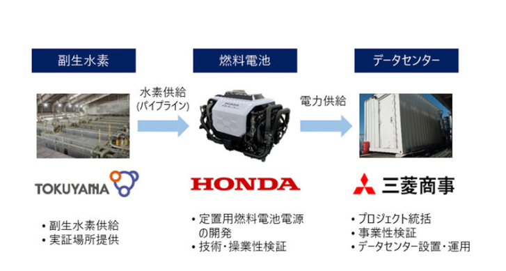 本田技研工業は8月1日、トクヤマ、三菱商事と検討を進めてきた「副生水素と車両からのリユースを想定した定置用燃料電池電源のデータセンター向け実証」を山口県周南市で開始した。