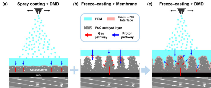 이번 연구의 핵심은 동결건조 기술로 만든 다공성 촉매층과 전해질막을 연속적으로 하나의 구조로 결합함으로써 연료전지 반응의 핵심 공간인 '삼상계면'을 평면이 아닌 3차원(3D) 입체 구조로 확장했다는 점이다. 가스 확산과 반응 효율을 동시에 개선해 이동형 연료전지 기술로의 활용 가능성을 크게 높였다.