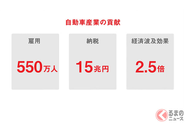 自動車産業の経済波及効果は大きく、日本経済において重要なポジションを占めている(画像:日本自動車工業会公式YouTubeより)