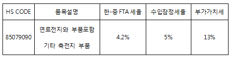 · 2020년 12월 21일 중국 국무원 관세세칙위원회의 '2021년 관세조정방안'에 따라 한국산 수입 관세율 4.2% 적용