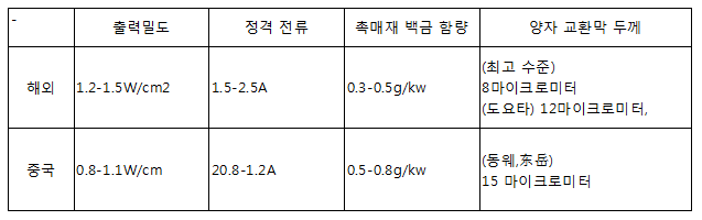 중국 막전극 성능 외국 기술 대비 격차