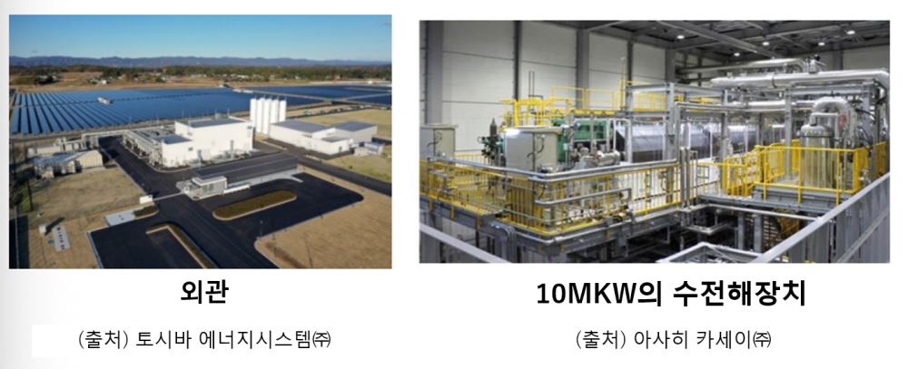 일본에서는 수소 생산을 위해 신에너지산업기술 종합 개발기구(NEDO)와 도시바 에너지 시스템, 이와타니 산업 등이 협력하여 그린 수소의 상용화를 위한 연구를 후쿠시마현에서 진행하고 있다. 2020년 2월에는 재생 에너지를 활용해 10메가와트의 수전해장치*를 보유한 <후쿠시마 수소에너지분야 연구 필드(FH2R)>이 설립돼 가동을 시작했다. 해당 기관에서는 시간당 13.4톤의 수소를 생산하는 능력을 보유하고 있어 청정 수소 제조 기술의 비용 절감 등을 연구하며 청정 수소 기술을 개발하고 있다.