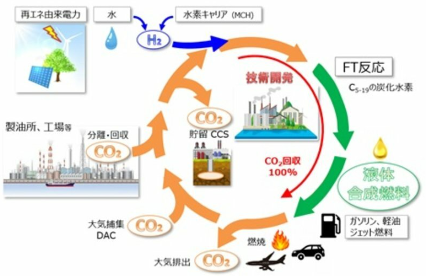 資源エネルギー庁は10月22日、グリーンイノベーション基金を活用して、CO2と水素から製造する「合成液体燃料」を開発するプロジェクトを推進し、2040年に商用化を目指す計画を発表した。