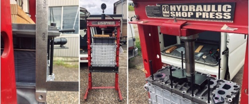 この失敗から、かなりの圧力で締結されていることが推測できた。そこで、ハンドプレス機を使って簡易的にその圧力を調べてみたのだ。