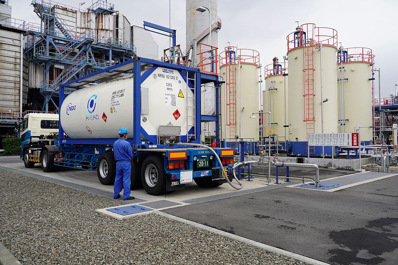 昨年12月、ブルネイで天然ガス由来の水素を利用して製造された「メチルシクロヘキサン」(MCH)を積み込んだ船が、川崎港に初めて到着した。MCHは東亜石油の製油所内の設備で水素とトルエンに分離。その水素を発電用燃料として同じ製油所内の火力発電所で燃やす試験が今年5月に始まった。分離されたトルエンは船に積まれ、ブルネイに戻る。そこで再び天然ガスから改質された水素と合成され、MCHとして利用される。