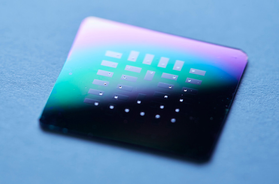 30개의 개별 포도당 마이크로 연료 전지가 있는 실리콘 칩.(사진:MIT)