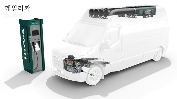 르노가 합작회사 HYVIA를 통해 지난해 공개한 마스터 H2는 이산화탄소(CO2) 배출 없이 오직 전기와 수소만으로 구동이 가능하다. 33㎾h 배터리를 운전석 아래 싣고 최대 7㎏ 충전이 가능한 수소 탱크를 차체 위에 얻는 구조다. 이를 통해 한번 충전으로 최대 500㎞ 주행이 가능하다. 재충전 시간은 단 5분이다.