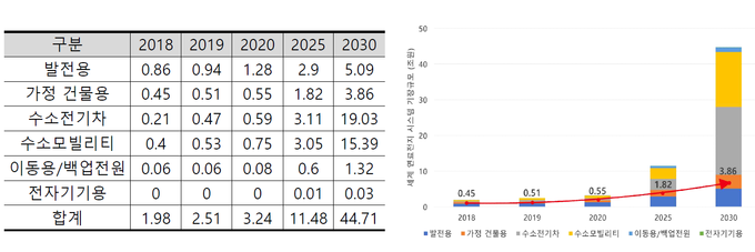 ▲ 전 세계 연료전지시스템 시장규모(단위: 조원).