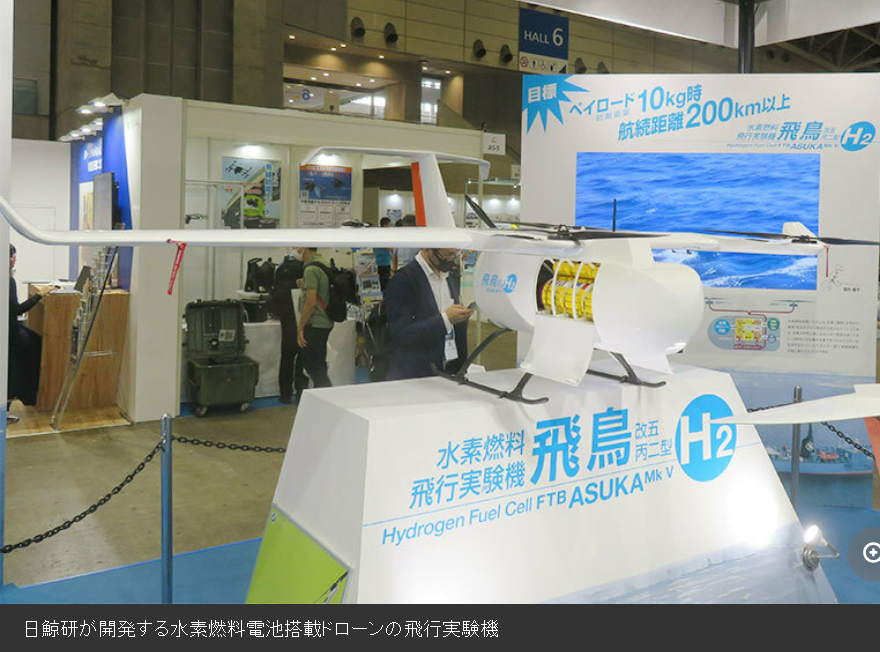 日本鯨類研究所(東京都中央区、藤瀬良弘理事長)は、2024年度末をめどに水素燃料電池を搭載した長距離飛行ロボット(ドローン)「飛鳥改5丙2型」を開発する。リチウムイオン電池(LiB)を使う現行機種に比べ飛行距離は2倍の200キロメートル、可搬重量は5倍の10キログラムにそれぞれ向上できる見込み。飛行距離性能の高さを生かし、将来は鯨類調査観測だけでなく、一般漁船からのドローンによる魚群発見や広域警備、災害救助分野への利用を視野に入れる。価格もその時点で1500万円程度を目指す。