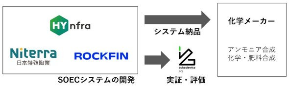 日本特殊陶業は2025年9月10日、ポーランドのLukasiewicz Research Network New Chemical Syntheses Institute(L-INS)、Hynfra、Rockfin、同国の化学メーカーを含む5者で、グリーンアンモニア合成向けの固体酸化物形電解セル(SOEC)を用いた水電解装置の実証と産業スケール向けシステムの開発について覚書(MOU)を締結したと発表した。