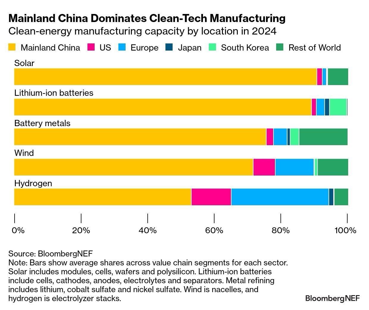 China today completely dominates all the key technologies for a fast electrifying world. Whether it be solar panels, lithium batteries or the critical metals behind them, the world depends on China. In addition, there are critical components such as power electronics and let’s not forget electric vehicles that China also dominates…Europe and the US are far behind except in two technologies, hydrogen in the case of Europe and nuclear in the case of the US and both of these technologies are at best niche…The lesson is simple. Whoever controls the supply chain controls the future. And right now, that future is being built in China.